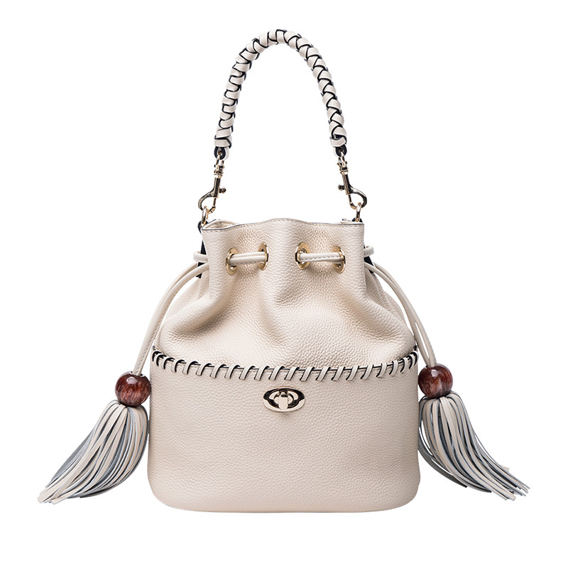 The hand-woven handle and tassels are eye-catching, coupled with acrylic balls embellishment, make the design of this bag even more special